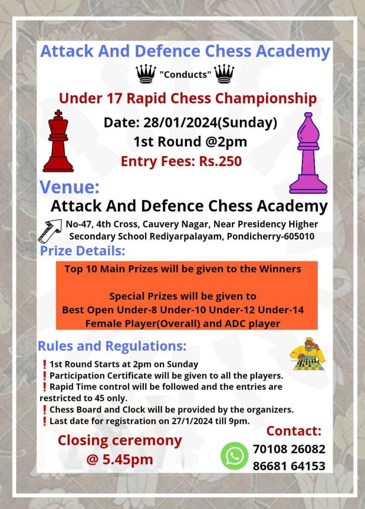 ☑ January 28, Sunday – ADC Rapid Under 17 Children Tournament – 2 PM to 6 PM