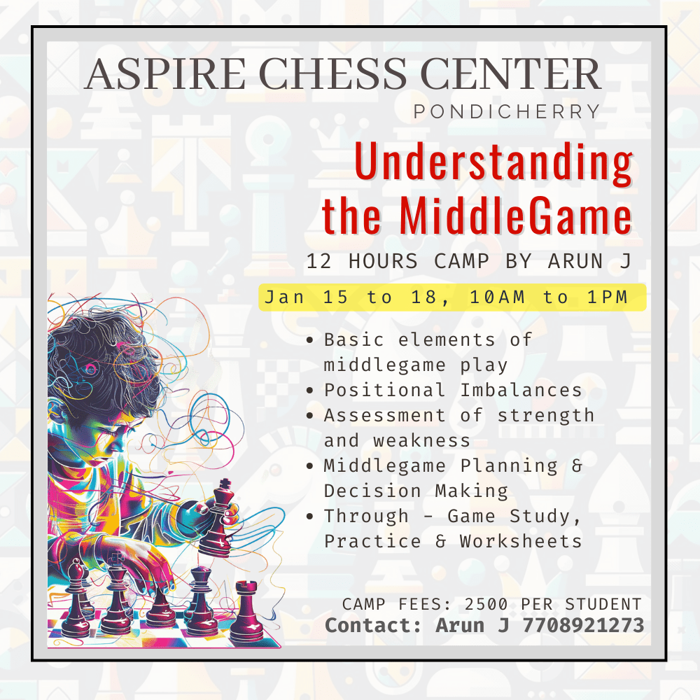☑ January 15 to 18 – Understanding the Middlegame Camp by Arun J