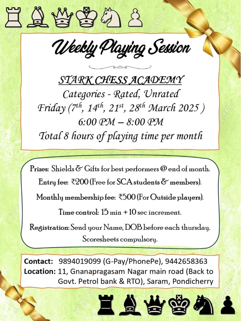 ☑ March 07, 14, 21, 28 – Fridays – Stark Practice Session 6 PM to 8 PM
